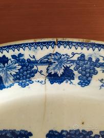 due vassoi - raviere in porcellana, uno della meissen sci Laveno e l'altro di probabile fattura inglese, della fine dell' ottocento; il primo della larghezza di 33 cm, in alcuni punti presenta delle leggere ombre giallastre dovute al tempo e l' altro qualche imperfezione sul bordo superiore come si nota nelle.foto.