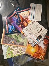 Salve, vendo SILVER ANNIVERSARY D&D box completo con i 3 manuali, schermo del master, schede personaggio, mappe, flyer pubblicità, classico marchio TSR.