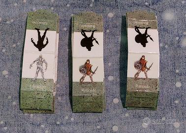 Vendo il seguente modulo avventura per Dungeons and Dragons di livello Base: - NB1: La Ricerca della Spada d'Argento (in italiano - Editrice giochi) 1) Buone riguardo la copertina esterna che non presenta strappi, segni o abrasioni. Ha solo un leggeto consumo degli angoli sia sul lato della copertina sia su quella della quarta di copertina. 2) Il fascicolo interno, salvo qualche micro orecchia agli angoli e un leggerissimo ingiallimento delle pagine, è in condizioni praticamente analoghe al nuovo. Le graffette non presentano alcun segno di ruggine. 3) I segnalini sono stati staccati dal blister ma sono tutti presenti e in perfette condizioni. 4) La mappa è presente e in perfette condizioni. Prezzo richiesto: 55 euro. Ho altro materiale da dare via relativo a D&D Becmi, edizione di fine anni '80 ed inizio '90, visionabile guardando gli altri miei annunci o chiedendo la disponibilità. Possibilità di unica spedizione per più materiale tramite annuncio di vendita ad hoc. Ulteriori informazioni su richiesta.