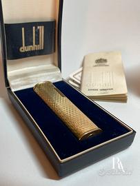 Accendino Dunhill Dress presentato da Dunhill nel 1973, revisionato da cima a fondo decorato con una camicia d’oro 750 (peso di questo accendino 76 grammi), scatola e documenti. Invio da Logroño, Spagna.