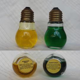 Bottigliette Mignon a forma di lampadina anni '70 del '900; contenuto medio 3,5 cl. gradi 30, prodotto e imbottigliato da E.V.E.L.T. Torino.