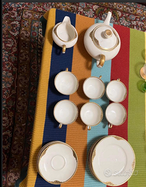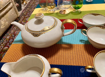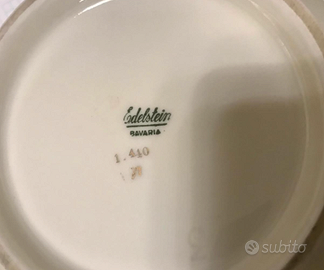 PREGIATISSIMO, ESCLUSIVO e RAFFINATO servizio completo da the in stile VITTORIANO per un totale di 20pezzi. Prodotto dalla rinomata Manifattura EDELSTEIN BAVARIA 1.440. Realizzato in fine porcellana bianca con bordi e manici decorati a mano in oro zecchino . Antico riconducibile ai Primi del Novecento. Da COLLEZIONE o IdeaREGALO. Si tratta di un Set con: 6 tazze con relativo piattino + 6 piatti da dolce + teiera + zuccheriera o bricco per il latte. CONDIZIONI: ottimo stato conservativo ma essendo un articolo antico/vintage può presentare i lievi segni del tempo che ne attestano l'originalità e il fascino. Proveniente da collezione privata di Villa Veneta del 900.