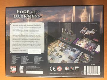 L'oggetto in vendita è la versione Kickstarter (pledge Guildmaster) del gioco da tavolo Edge of Darkness, completo di tutti gli Stretch Goal e le esclusive sbloccate durante la campagna KS.
