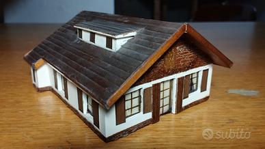Riproduzioni in Ho di # baita con personaggio (13,5x9,5x5,5cm) #casa a 2 piani con personaggio (16x11x5,7) #casa con mansarde (14,5x13x7) #edificio pubblico (22,5x10x9,5). Realizzati a mano con carta,cartoncino,compensato,balsa e vari altri elementi di finitura. Edifici "invecchiati" nella coloritura. Tutte le imperfezioni visibili nelle foto sono dovute al metodo di costruzione.
