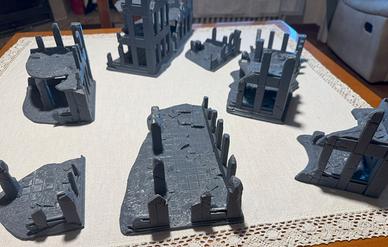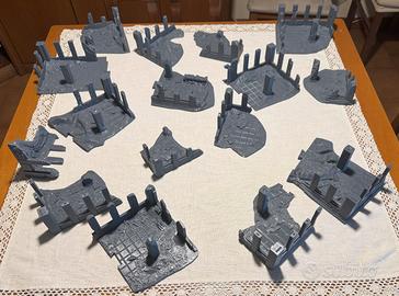 Moduli per costruire un paesaggio di rovine per WarHammer, Warhammer 40K e giochi di ruolo in generale, composto da 16 pezzi.