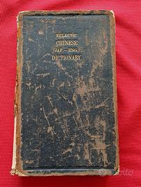 ”Electic Chinese-Japanese-English Dictionary of Eight Thousand Selected Chinese Characters: Including an Introduction to the Study of These Characters as Used in Japan, and an Appendix of Useful Tables”. Compilato da Ambrose Daniel Gring, pubblicato da Z.P. Maruya & Company nel 1884. Ha qualche segno del tempo (vedi foto) ma la rilegatura è ancora intatta e le pagine sono ancora attaccate.