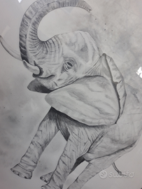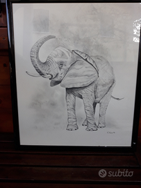 Vendo disegno di elefante eseguito a matita già incorniciato misura cm 53x63 molto bello, prezzo di vendita quasi solo della cornice. Zona Zelarino