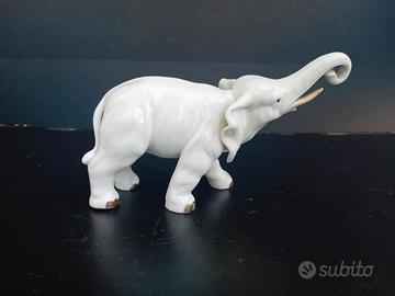 Elefante in porcellana bianca di alta qualità. L'eleganza del bianco unito alla posa dinamica rendono l'oggetto particolarmente piacevole alla vista.