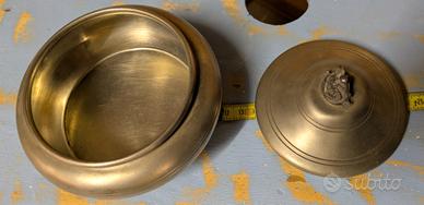 Dettagli: Tre piedini decorativi e pomolo artistico sul coperchio.