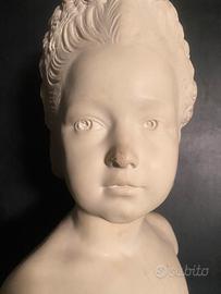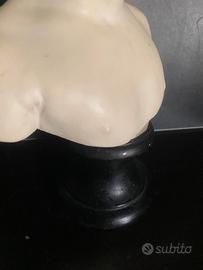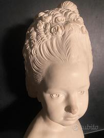 Elegante Busto Neoclassico - Maria Antonietta Giovane - 48 cm. raffinata scultura d’arredo realizzata in polvere di marmo (marmo ricomposto), materiale di pregio caratterizzato da un’elevata pesantezza e una finitura liscia e fredda al tatto, del tutto simile al marmo statuario. L'opera ritrae con estrema grazia la Regina Maria Antonietta di Francia in età giovanile. Il design si ispira ai celebri modelli di Jean-Antoine Houdon, icona della scultura del XVIII secolo. Si notano i dettagli magistrali dell'acconciatura raccolta con boccoli definiti e l'espressione serena e nobile del volto. Il busto poggia su un elegante piedistallo (peduccio) circolare di colore nero, che crea un contrasto cromatico ideale per valorizzare la figura in ambienti sia classici che moderni. Specifiche Tecniche: • Materiale: Polvere di marmo (molto pesante e solida) • Altezza Totale: 48 cm • Altezza Base: 10,5 cm • Diametro Piede: 13 cm • Stato di conservazione: Ottimo. Come visibile dalle foto, è presente un piccolo segno sulla punta del naso che conferisce carattere e autenticità al pezzo, senza intaccarne l'estetica generale. Data la delicatezza e il peso considerevole dell'oggetto, assicuro un imballaggio professionale e ultra-resistente. Disponibile anche per il ritiro a mano.