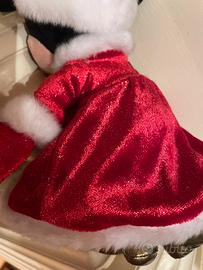 Elegante Minnie in peluche con abito natalizio in velluto rosso, misura circa 30 cm., ottime condizioni. Pezzo da collezione.