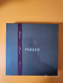 Penna a sfera Parker personalizzabile in acciaio inossidabile, caratterizzata dalla forma ergonomica a proiettile. Fornita in astuccio originale con fermacarte in vera pelle. Inchiostro Blu. Mai usata.