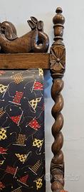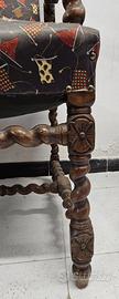Poltrona a rocchetta in legno di noce, risalente alla fine del XIX secolo, caratterizzata da una raffinata lavorazione artigianale e da dettagli scolpiti di grande pregio.