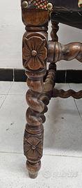 Braccioli e gambe torniti con tipico motivo a rocchetto, perfettamente conservati e solidi.