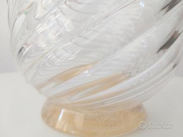 Splendido vaso Seguso, vetro di Murano, in prezioso vetro trasparente con polvere d’oro, forgiatura a spirale,con filetto rosso. L’oggetto, realizzato nella seconda metà degli anni 1970, è di pregevole qualità, privo di difetti o danneggiamenti.