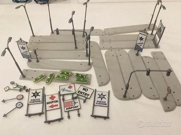 1 caserma con semaforo + 1 elicottero +1 parcheggio + 2 camion + 1 guardiola +2 auto + 2 autoambulanze + 1 albero + 1 aiuola verde + 10 ometti + 15 marciapiedi + 9 lampioni + 2 semafori + 6 fioriere
