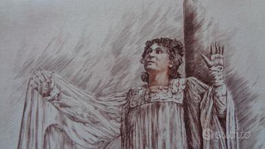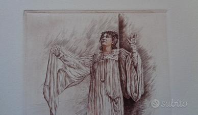 impressa con torchio artigianale, manuale, su foglio di cm. 35 x 25 in carta speciale in cellulosa morbida e spessa Fabriano x calcografie di incisioni.