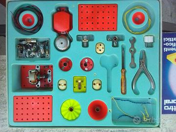 kit semicompleto completo anni ’80, contiene i componenti mostrati in foto: morsetti, bobine, ingranaggi, assemblaggi elettrici e cablaggi. Scatola originale in condizioni buone. Ottimo per collezionisti o appassionati di giochi vintage. Prezzo trattabile.