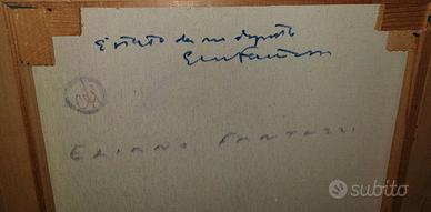 A retro firma e autentica dell’artista. Dipinto ad olio su tela.