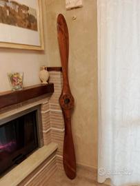 Meravigliosa replica di elica istallata sul mitico biplano Ansaldo SVA 10 con il quale Gabriele D'Annunzio effettuò la storica Trasvolata su Vienna. Realizzata fedelmente come l'originale in legno di rovere con lunghezza 200 cm, viene venduta con un supporto da muro per il fissaggio in sicurezza su parete.