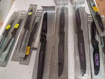 eliche scoppio alcuni tipi vanno bene anche per elettrico : XOAR 17x6 PJA IIAJ Legno €12 Master Airscrew Tripala 15x7 Nylon (Eletric/gas) MA1570T €14 Master Aircsrew Tripala 16x8 Nylon (Eletric/gas) €14 Fiala 15x8 Classic Legno €12 Master Airscrew 13x10 Scimitar €5 Master Airscrew 14x10 Scimitar €5 Master Airscrew 20x10 classic €16 Graupner 10x6 Super nylon €5 Graupner 13.5x8 super Nylon €6 Graupner 6x4 Super Nylon €3 APC 11x5 Sport €4 APC 14x8 Pattern €8 APC 16x12 Pattern €8 APC 15x4W FunFly €5 APC 16x4W FunFly €5 (disponibili 4pz) APC 12x10 sport €6 APC 13x9 Sport €6 APC 7x7 sport €2 APC 7x5 Sport €2 Graupner CamProp: Gas/Eletric 7x6 - 7X4 - 8x4 (3) - 8x6 €4 cadauna 10x4 - 10x8 - €5 cadauna 14.5x4 - 14x6 (2) € 8 cadauna