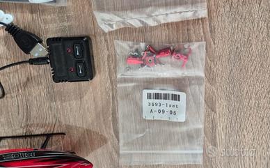 Ho anche batterie di ricambio. Tanti oggetti per ricambio, motore, pale, eliche. Si puo scegliere se guidarlo a 3 assi o 6 assi 3d o 6d