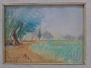 Elio Randazzo, pastello su carta, paesaggio rurale, '83 Inclusa pregiata cornice. Disponibile spedizione privata. Misure: cornice 28,3x36,3 cm; dipinto 22,5x16 cm.