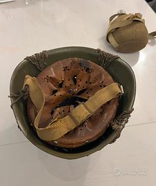 Vendo lotto italiano post ww2, composto da elmetto m33 in ottimo stato completo di retina, borraccia in alluminio con panno mimetico e tracolla sempre post, tutto anni 60.