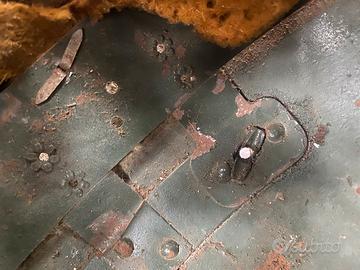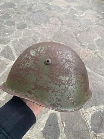 Elmetto M33 con rivetti primo tipo, marcsto B47, cuffia con cuciture parallele e rivettini in alluminio. Vissuto come di rvince da foto. Il soggolo, in un lato, riporta una cucitura al posto dei fue rivetti, penso aggiustatura dell’epoca. Mi raccomando se desiderate sltre foto piu esaustive chiedete.