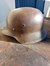 cedo elmetto m 42 mimetico , elmo in ottime condizioni , taglia rara ef 68 matricola 1791 mi sembra non si vede bene se è un 9 , la pelle è di maiale , all,interno c,è un pezzetto di carta attaccato alla calotta , dove presumo c,erano i dati del militare , esternamente , si vede attorno all,elmo che c,era un filo di ferro , per applicare il fogliame , per altre foto se seriamente interessati , basta chiedere . chiedo euro 1100 , più 12 per la spedizione . vedi anche i miei altri annunci , elmi farina , ed altro ww1 ww2
