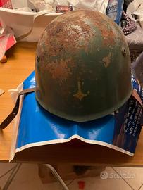 Elmetto militare chiaramente ussto con sombolo frontale appena visibile colore giallo rughine presente cordura interna e fibbia integri