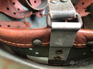 ELMETTO CONSERVATO D'EPOCA NON RIMANEGGIATO - elmetto modello 33 regio esercito WW2 , taglia 58 , codice S 181 , originale completo e mai smontato raro da reperire in questo stato , buono - ottimo stato conservativo ,pellame morbido , cuffia marcata con timbro tondo si legge solo " 1939 Torino " ,completo con i suoi marchi e codici vari ( guardare foto ) , presenta segni di utilizzo visibili in foto , bello e vissuto , reperito nei primi anni novanta da privati .