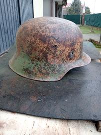 vendo elmo tedesco polizia croata seconda guerra mondiale , recuperato anni fa durante le ferie in croazia era usato da un contadino come porta mangime polli ho tolto le 3 zampe che c,erano ,l, elmo è solidissimo e si vedono ancora bene le due decals , elmo con ancora molto colore , e raro da trovare . chiedo euro 130 , più 12 per la spedizione . vedi anche i miei altri annunci , elmi ww1 e ww2