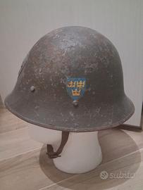elmetto svedese ww2 raro originale .per forma e per lo stemma “Tre Kronor”, è molto probabilmente un M/37, introdotto nel 1937 e usato durante la Seconda Guerra Mondiale.