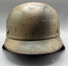 Raro elmetto tedesco Beaded, appartenuto alla polizei, visibile il fregio del partito sotto il mimetismo, mimetico 2 colori , trovato in Italia zona Alto Adige, originale ed in splendide condizioni, marcato Q64 .