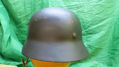 Elmetto tedesco in buone condizioni, conserva la totalità della colorazione originale eccetto qualche piccolissime mancanze o striature da uso. La cuffia in pelle è in ottime condizioni e ha un numero 3 impresso a inchiostro e non risulta sia stata rimontata. Si vede appena un numero di serie. Ho solo pulito il guscio con straccio e petrolio lampante. Originale e intonso. Sono disponibili molte altre foto.