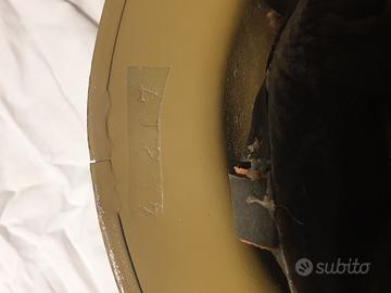 Elmetto intero tipo Inglese preso ad un mercatino non so nulla del periodo e nazionalita, riverniciato e restaurato?. Il metallo è integro con una scritta visibile, ceduto con formula visto è piaciuto consiglio l'eventuale acquisto con il metodo di Subito