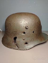 CEDO questo interessante stanhelm Austriaco m16 taglia 66 utilizzato durante la grande guerra (si vede chiaramente il color cachi) e riutilizzato durante la seconda guerra mondiale in Russia, è presente la verniciatura feldgrau originale della seconda guerra mondiale sopra a quella della prima guerra mondiale. Evidenti tracce di battaglia fra scheggie e probabili colpi di Arisaka Russo, un pezzo di pura storia Ausburgica e Germanica. Prezzo 260€ piú spedizione o ritiro a mano in zona Mestre (VE)