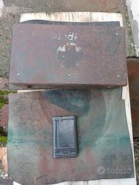 vendo , anche separatamente una cassetta trovata durante sgombero , croce rossa tedesca , a 50 euro , e kit per la pulizia del mauser tedesco con accessori vedi foto in condizioni perfette , tutto il suo colore , e chiedo euro 50 , più 12 per spese di spedizione . vedi anche i miei altri annunci , elmi , ww1 e ww2 ed altro