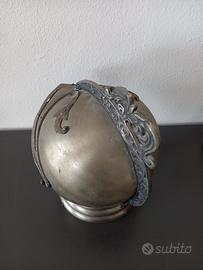 Casco da cavaliere d'epoca mancante di Bottiglia e Bicchieri da liquore Mobile bar Armatura splendente Metà secolo