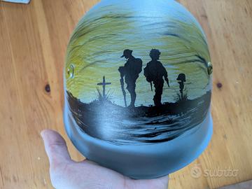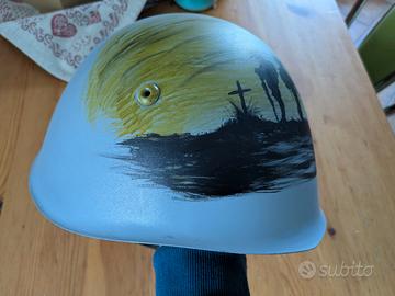elmo mod. 33 italiano, con dedica artistica fattami da una artista di mia conoscenza e della quale conoscenza ho potuto approfittarmi, nonostante mesi di attesa.. ovviamente opera pitturata a mano, su elmo originale. in vetrina rende molto bene ed è sempre bello guardarlo.. lo vendo per noia