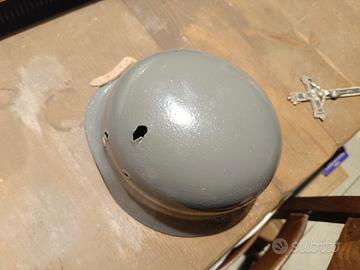interessante elmo con foro passante da parte a parte, soggolo interno non originale creato solo per manichino, cedo alla migliore proposta non avendo un prezzo reale di riferimento