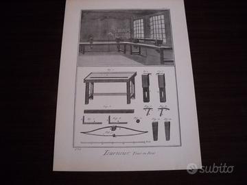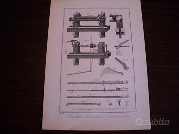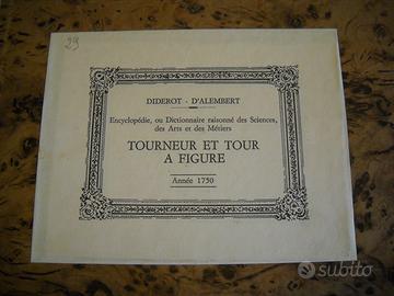 ENCICLOPEDIA di DIDEROT - D'ALEMBERT TOURNEUR ET TOUR A FIGURE dell'anno 1750Questa è la copia "originale"n.29 delle 500 copie stampate in lingua Francese.Comprende tutto sulle macchine per la tornitura e relativi attrezzi.E' composta da 20 pagine per la spiegazione delle successive 87 tavole di macchinari e tutti i pezzi che le compongono.Tutte le tavole sono comprese in una copertina rigida originale.L'enciclopedia è in OTTIME CONDIZIONI di conservazione (come nuova).Dimensioni cm. 25,5x35Per chi avesse ulteriori domande, sono a completa disposizione