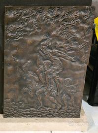 Il volume è inserito in una scultura/custodia in bronzo a bassorilievo firmata dall'artista, montata su una solida base in travertino.