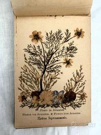 Erbario del XIX secolo proveniente dalla Terra Santa, realizzato a libretto e impreziosito da una copertina in legno di ulivo con rilegatura in pelle, materiali fortemente simbolici e tipici dell’area di Gerusalemme.