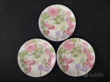 3 piatti piani Ernestine anni '50 con decori floreali dagli stupendi colori pastello mod. 871 Diametro cm 22 Altezza cm 2 In condizioni pari al nuovo