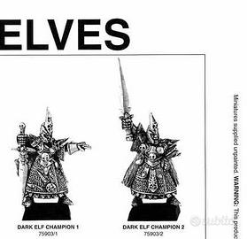 In vendita un modello di Eroe/Campione, Elfi Oscuri, in metallo della 5 edizione Warhammer fantasy.