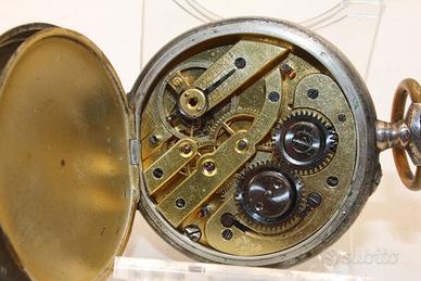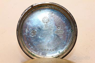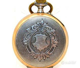In un'epoca di grande splendore tecnico ed estetico, la manifattura Hertha ha dato vita a questo magnifico esemplare che incarna perfettamente il gusto della fine del 1800. Si tratta di un pezzo di rara bellezza, caratterizzato da una cassa armoniosa con un diametro di 43 mm e un peso solido di 62,7 grammi. La struttura è realizzata in pregiato argento 800, arricchita lungo i fianchi da una delicata profilatura in oro che conferisce al segnatempo una preziosa bicromia tipica dell'alta orologeria del periodo. Il quadrante in smalto bianco è un trionfo di decorazione artigianale: spiccano le raffinate cifre romane nere e una minuteria esterna impreziosita da punti in rilievo dorati e argentati. Al centro, un delicato motivo floreale dipinto a mano incornicia le lancette dorate traforate, donando all'insieme un tocco di estrema grazia. Sul retro, la cassa presenta una fitta lavorazione a guilloché che protegge un medaglione centrale ancora libero da incisioni, pronto per essere personalizzato. Il cuore dell'orologio è un movimento meccanico d'epoca che mantiene ancora oggi il suo battito vitale. Sebbene il meccanismo sia regolarmente in funzione, la lancetta dei minuti risulta attualmente ferma, rendendo necessaria una revisione professionale per riportare questo gioiello della meccanica alla sua piena efficienza operativa. Questo esemplare rappresenta un'opportunità eccezionale per chi desidera possedere e restaurare un frammento autentico di storia orologiaia tardo-ottocentesca.