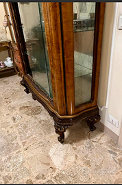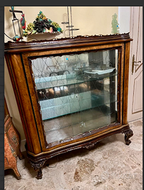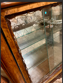 ESCLUSIVA e PREGIATA vetrina cristalleria STILE CHIPPENDALE, caratterizzata da elaborati intagli e ante scorrevoli in cristallo. Realizzata in radica di noce le ante in cristallo permettono una perfetta esposizione di oggetti d'arte, porcellane o collezioni. Antica risalente Primi 900. CONDIZIONI: ottimo stato conservativo ma essendo un articolo ANTICO/VINTAGE può presentare alcuni segni di normali usure e difetti commensurati all'epoca e all'uso nel tempo, da collezione.