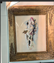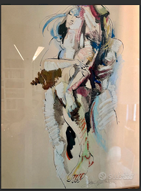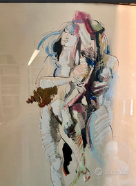 SENSAZIONALE e ESCLUSIVO dipinto raffigurante due figure umane stilizzate in un abbraccio, caratterizzato da linee astratte e colori tenui. Opera d'Arte moderna, contemporanea, FIRMATA dall'artista. Vintage/Antica riconducibile agli anni '60/'70. CONDIZIONI: ottimo stato conservativo ma essendo un articolo antico/vintage può presentare i lievi segni del tempo che ne attestano l'originalità e il fascino. Proveniente da collezione privata Villa Veneta del '900. MISURE: L56xh.64xp5cm c.a.